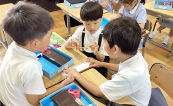 どの学年でも「実社会との接点を増やすこと」を授業のポイントにしています。授業中に出た疑問を子ども同士で考え、話し合い、学びを深めています。