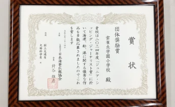 社会科独自の「新聞テンプレート」を作成し、3年生から新聞の作り方を指導をします。外部のコンクールで団体賞をいただきました。