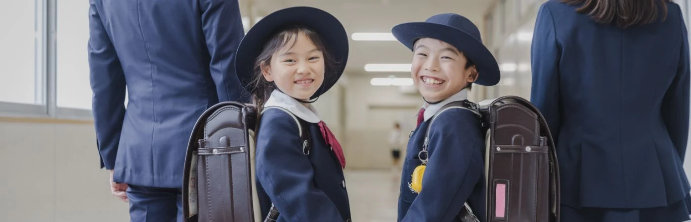 子どもらしい元気な紳士淑女がコンセプト。男子はネクタイ、女子はリボンにジャケットを着用します。スラックスタイプのものも選べます。